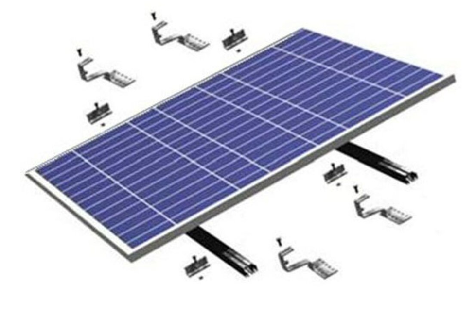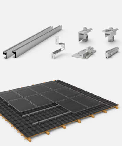 Comprehensive kit for mounting solar panels, suitable for various roof types.